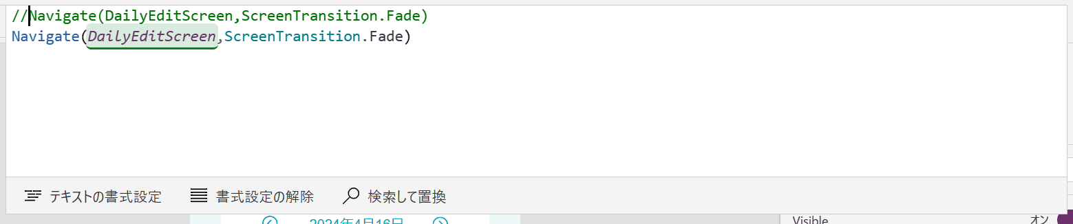 コードの最初に二重のスラッシュ//が入力されている場合、PowerAppsは以降の行(//を含む)をコメントとみなします。