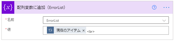 変数を初期化する(SkipCount)アクションの後続に、変数を初期化する(ErrorList)アクションを追加し、変数を初期化します。