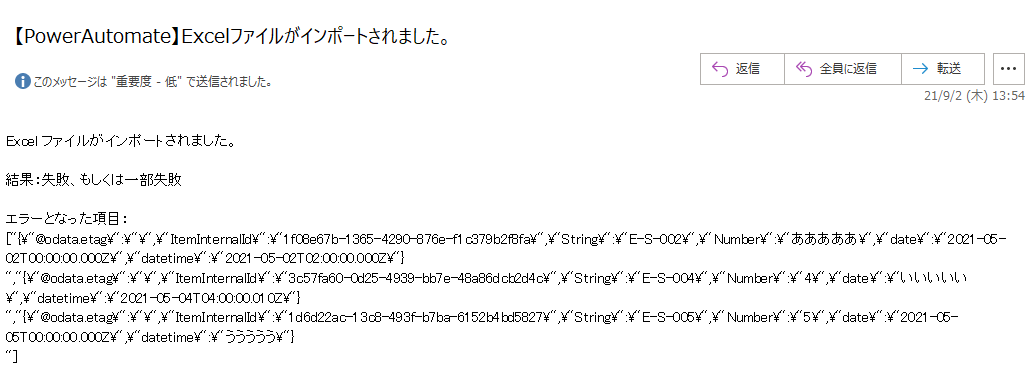 表データの中に異なる形式の値がある場合は、その内容がメールにて通知されていると思います!