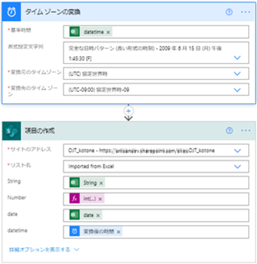 前回はPower AutomateにてExcelデータをSharePointリストにインポートするフローを作成しましたが、 実行したところ、ExcelデータとSharePointリストのdatetime列に差異(SharePointリストのdatetime列が9時間先行)が発生していました。