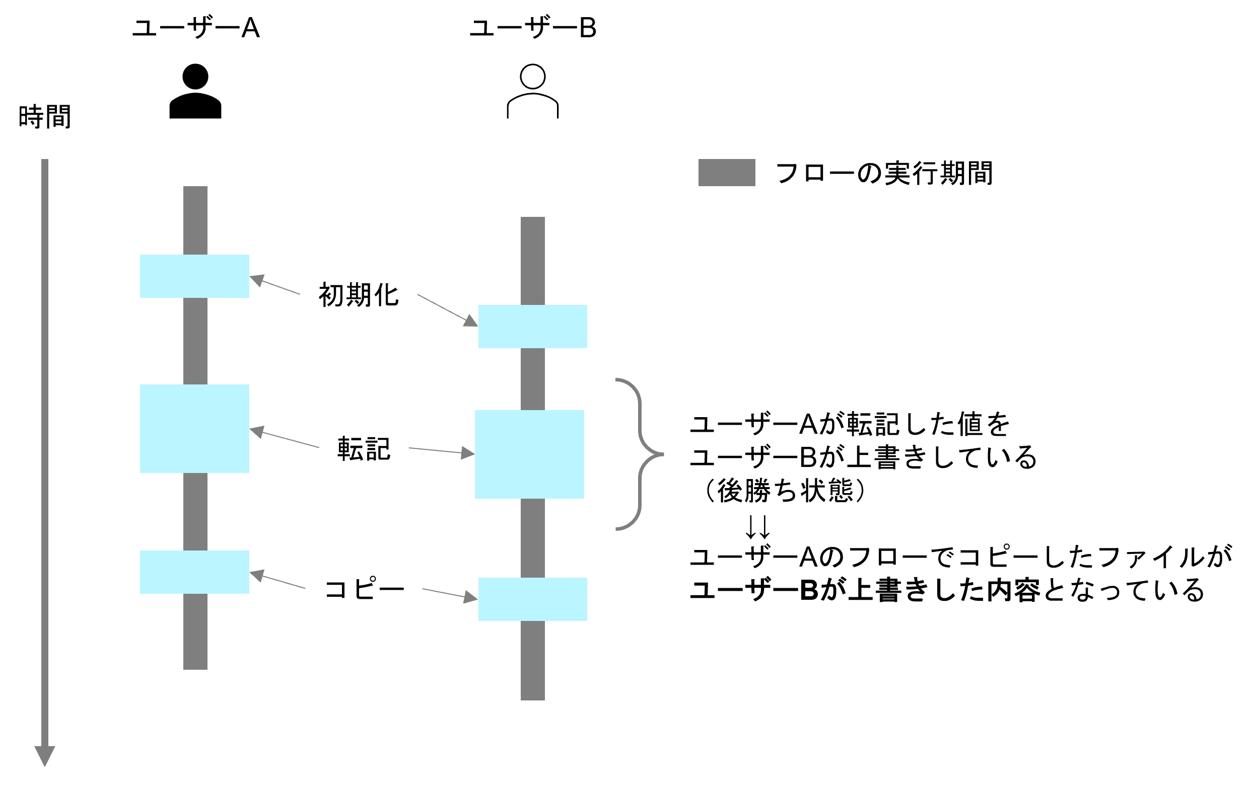 Power Automateが複数ユーザーから同タイミングで実行された場合、後から実行された方の値が優先される事象(いわゆる「後勝ち」状態)が発生しました。 イメージとしては以下です。