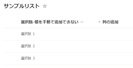 また、SharePointリストには選択肢1~3のデータが保存されています。